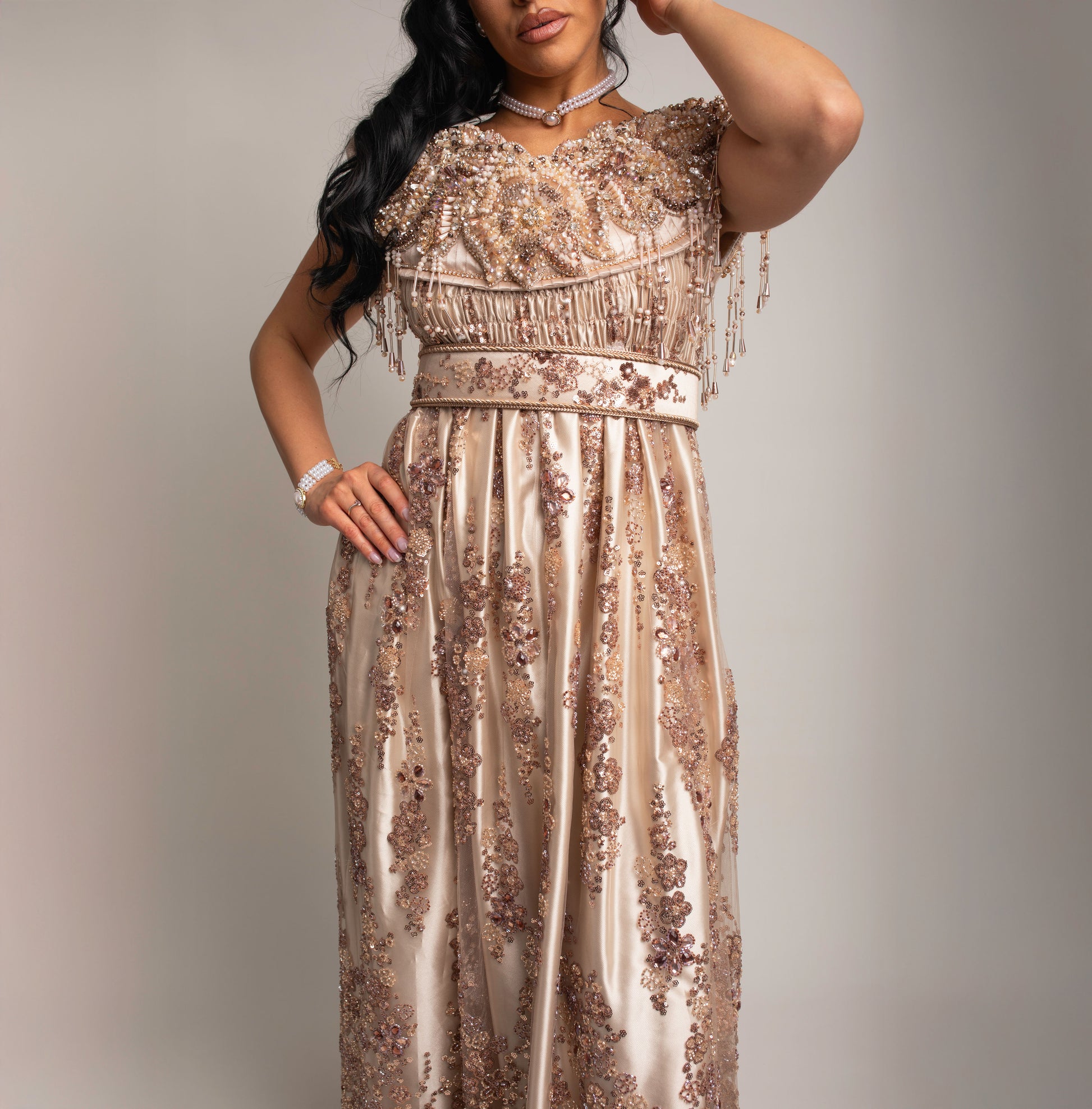 Tradition et finesse se rencontrent dans cette blousa richement perlée à la main.