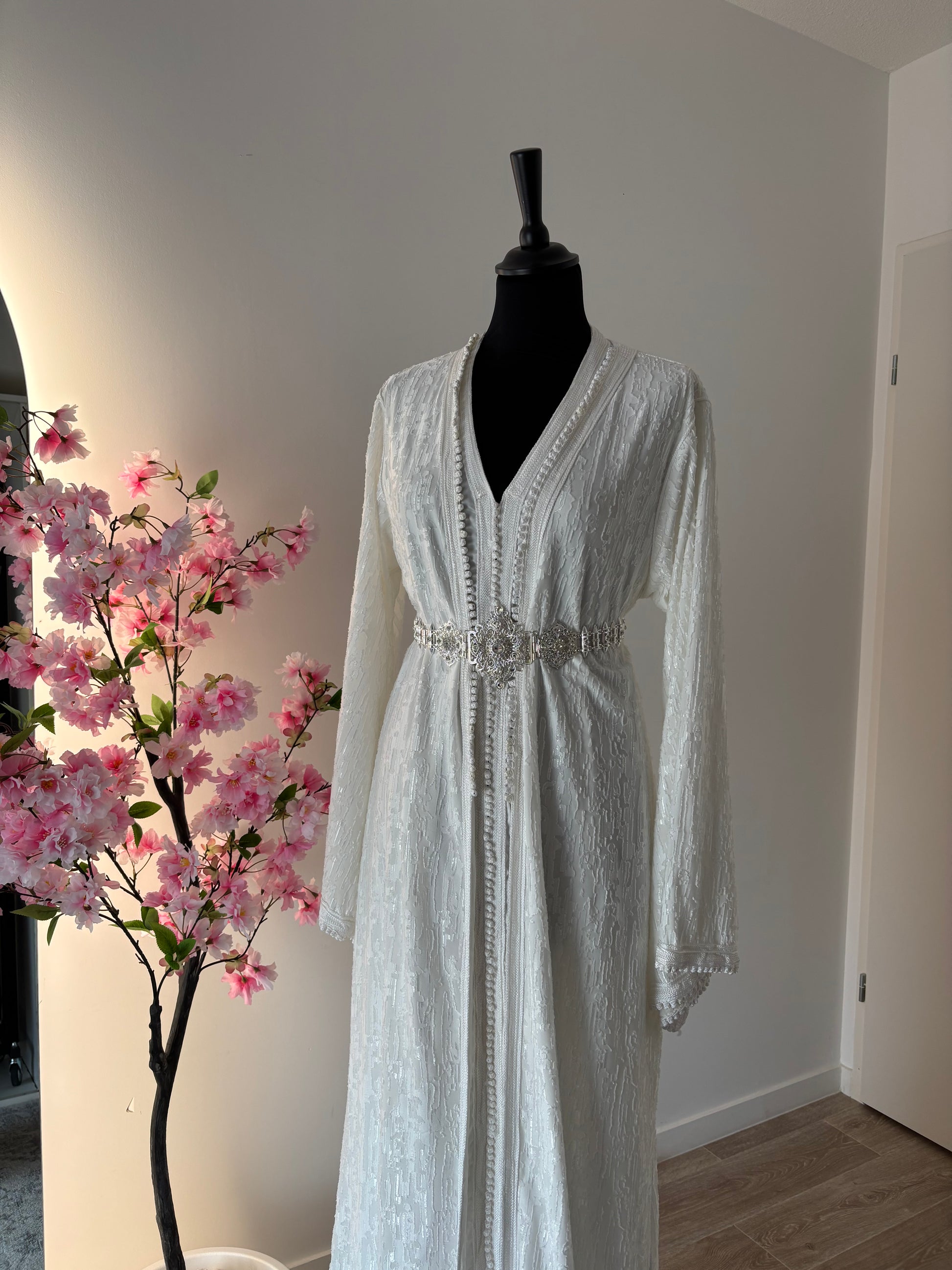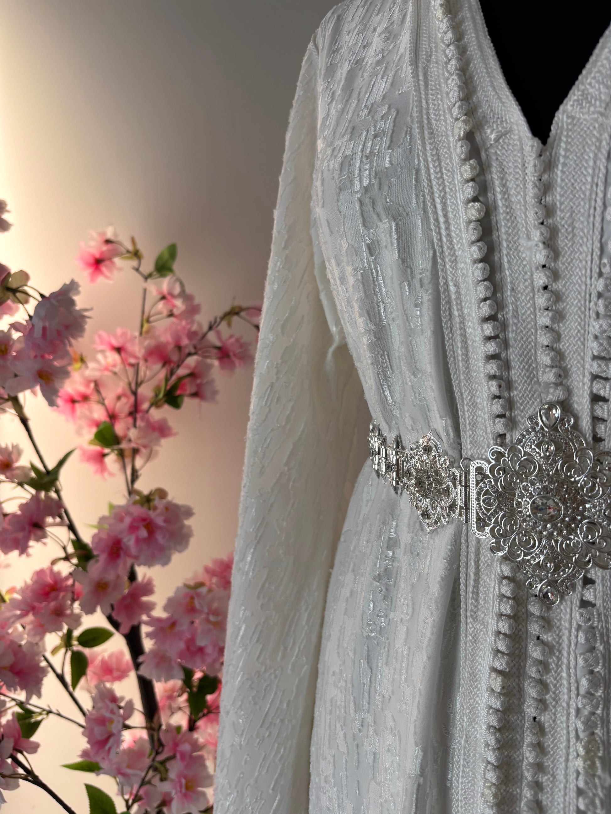 La takchita blanche, alliant pureté et élégance, vous enveloppe d’un charme raffiné pour vos moments les plus précieux.